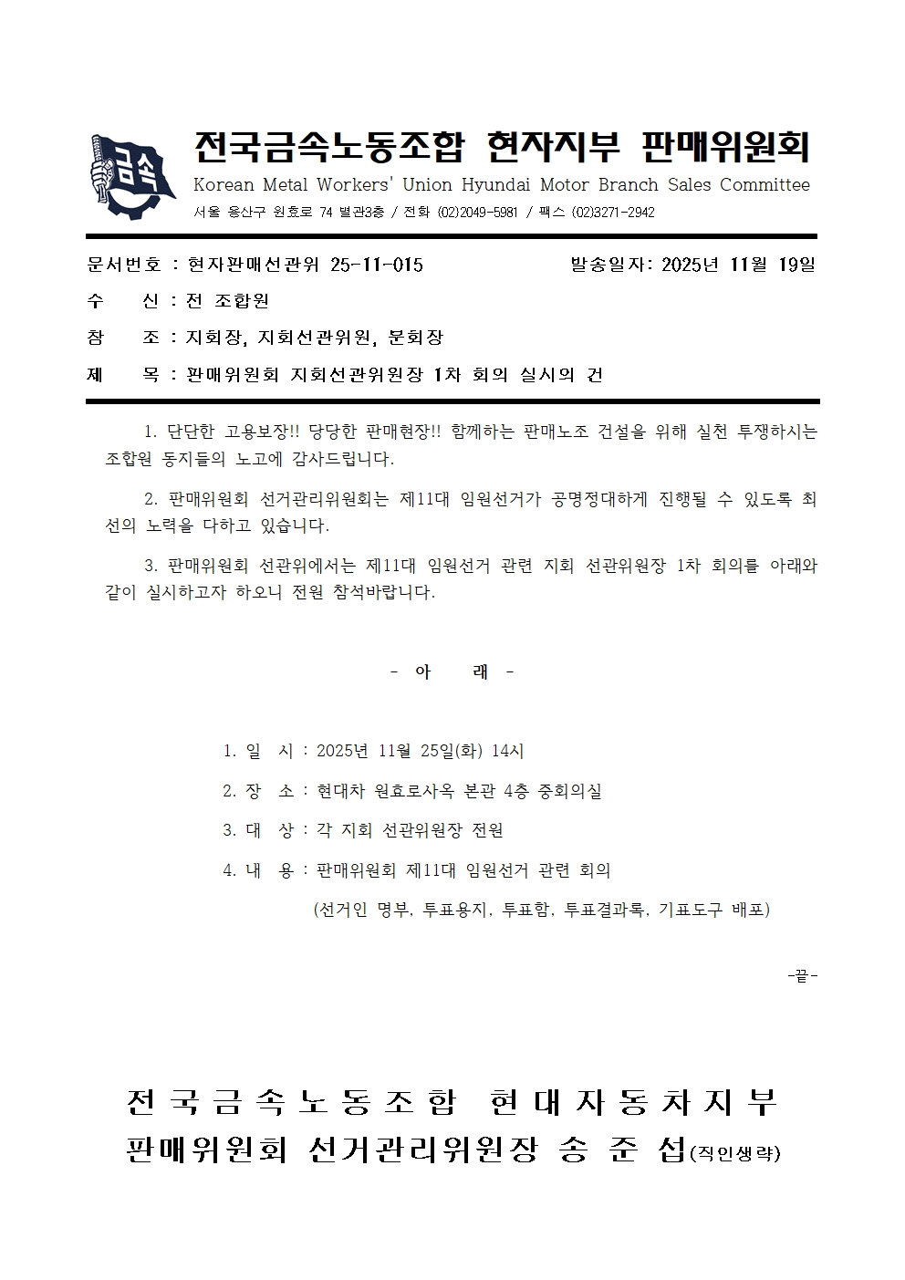 [¼±°üÀ§] ÆÇ¸ÅÀ§¿øÈ¸ Áöȸ¼±°üÀ§¿øÀå 1Â÷ ȸÀÇ ½Ç½ÃÀÇ °Ç