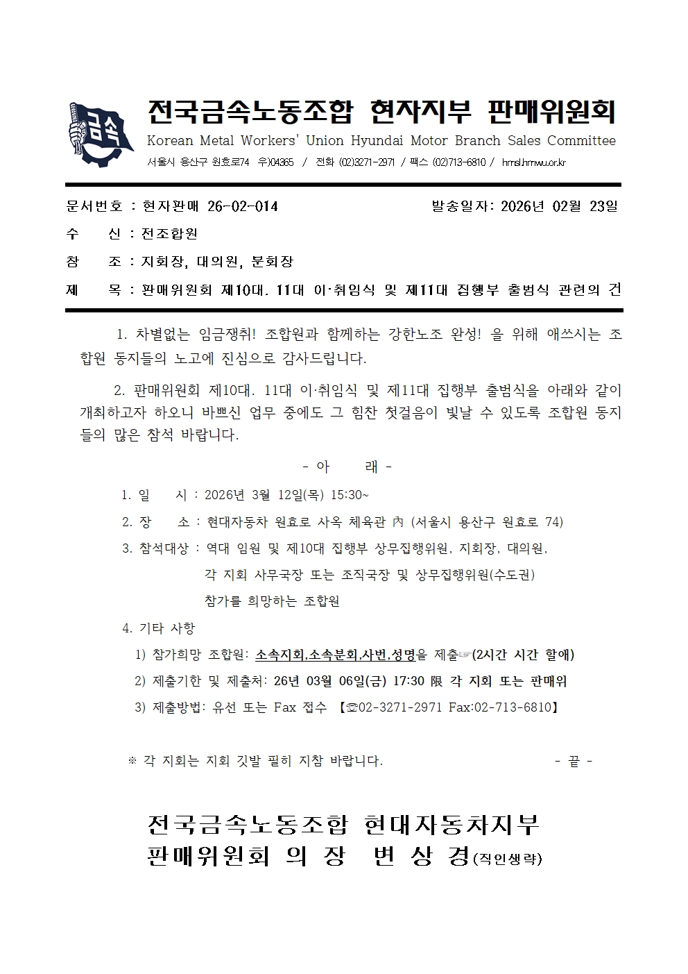 [°ø¹®] ÆÇ¸ÅÀ§¿øÈ¸ Á¦10´ë, 11´ë ÀÌ,Ãëħ½Ä ¹× Á¦11´ë ÁýÇàºÎ Ãâ¹ü½Ä °ü·ÃÀÇ °Ç