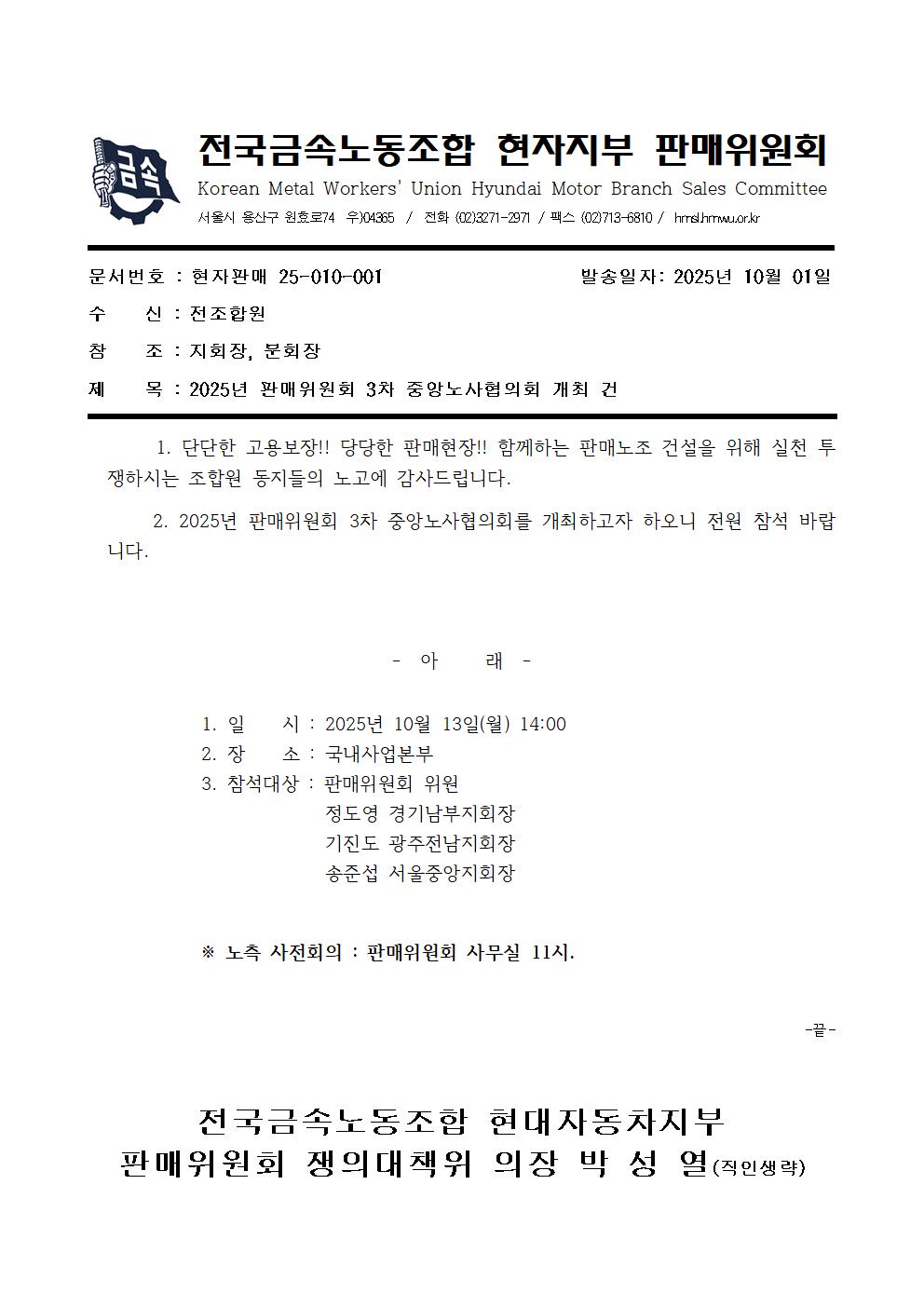 [°ø¹®]2025³â ÆÇ¸ÅÀ§¿øÈ¸ 3Â÷ Áß¾Ó³ë»çÇùÀÇȸ °³ÃÖ °Ç