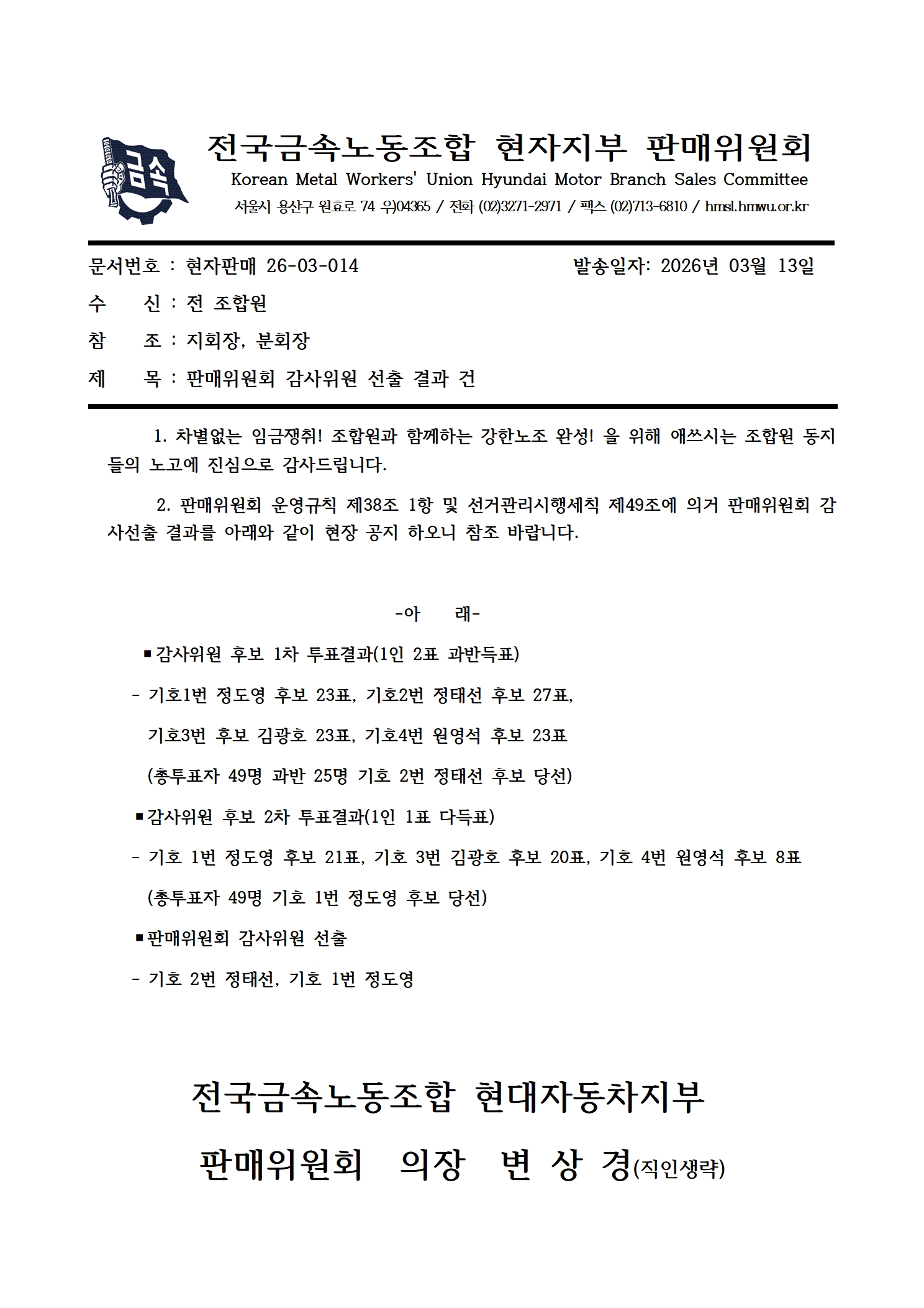 [°ø¹®]ÆÇ¸ÅÀ§¿øÈ¸ °¨»çÀ§¿ø ¼±Ãâ °á°ú °Ç