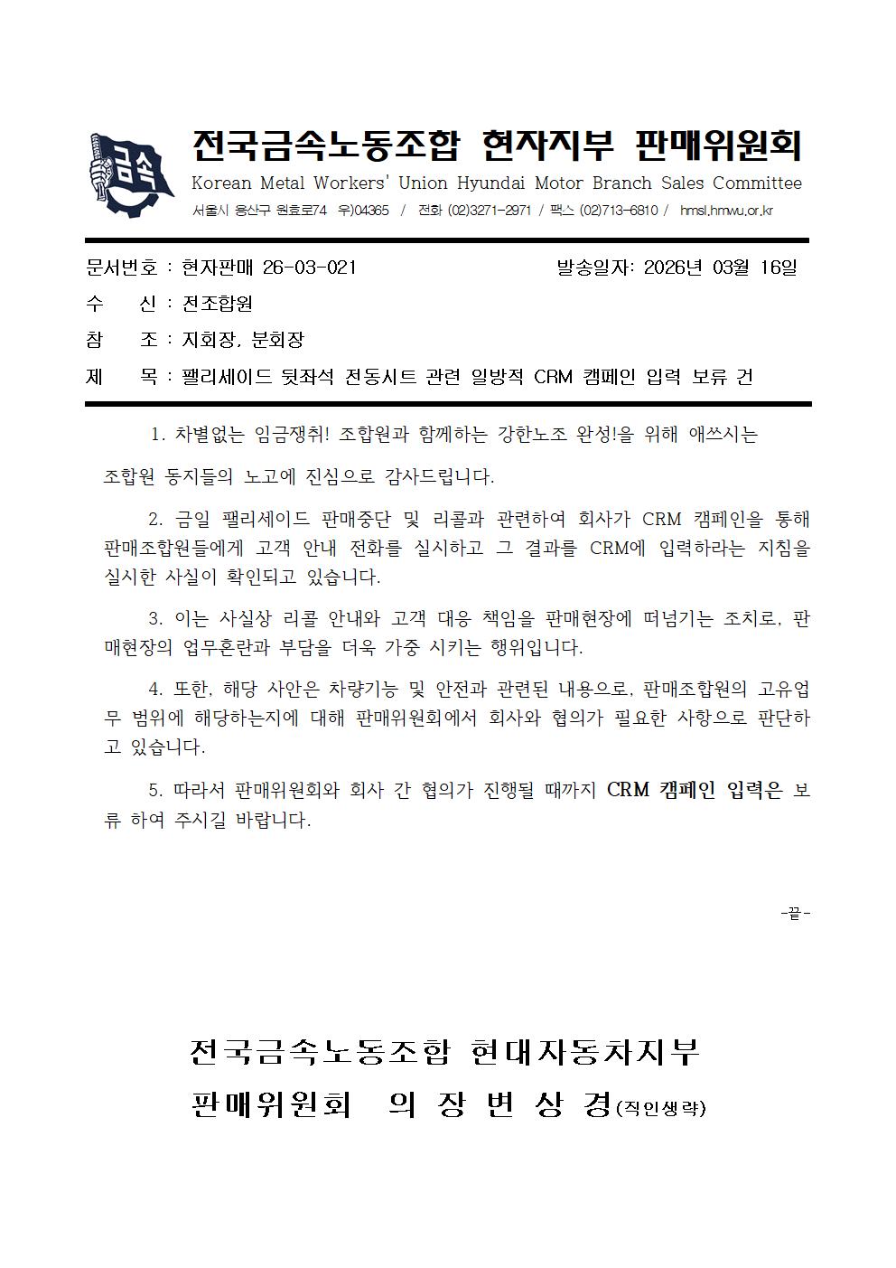 [°ø¹®] ÆÓ¸®¼¼ÀÌµå µÞÀÚ¼® Àüµ¿½ÃÆ®°ü·Ã ÀϹæÀû CRM Ä·ÆäÀÎ ÀÔ·Â º¸·ù °Ç