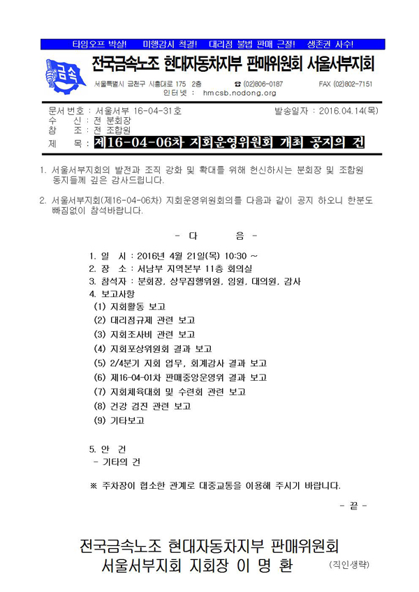 [°ø¹®]Á¦16-04-06Â÷ Áöȸ¿î¿µÀ§¿øÈ¸ °³ÃÖ °øÁöÀÇ °Ç