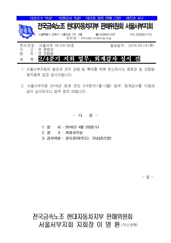 [°ø¹®]2/4ºÐ±â Áöȸ ¾÷¹«, ȸ°è°¨»ç ½Ç½Ã °Ç