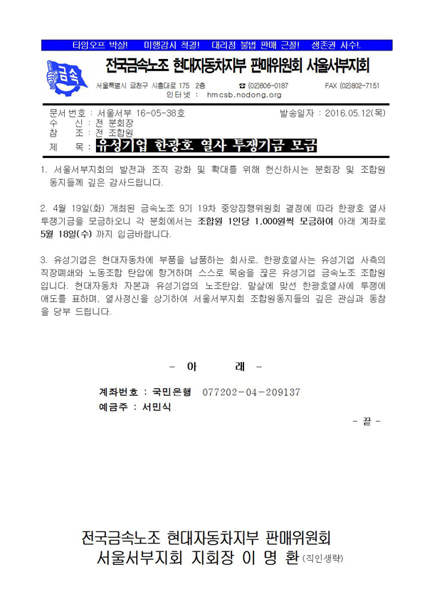 [°ø¹®]À¯¼º±â¾÷ Çѱ¤È£ ¿»ç ÅõÀï±â±Ý ¸ð±Ý