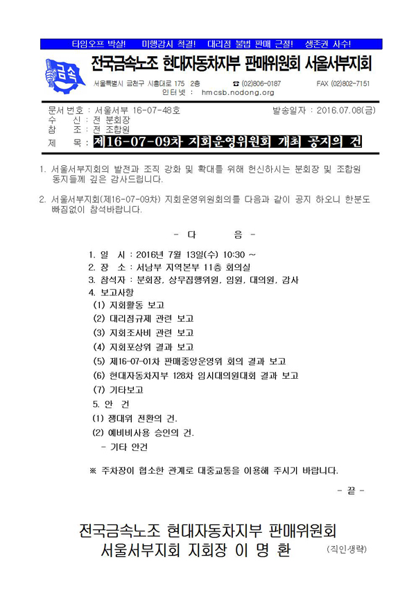 [°ø¹®]Á¦16-07-09Â÷ Áöȸ¿î¿µÀ§¿øÈ¸ °³ÃÖ °øÁöÀÇ °Ç