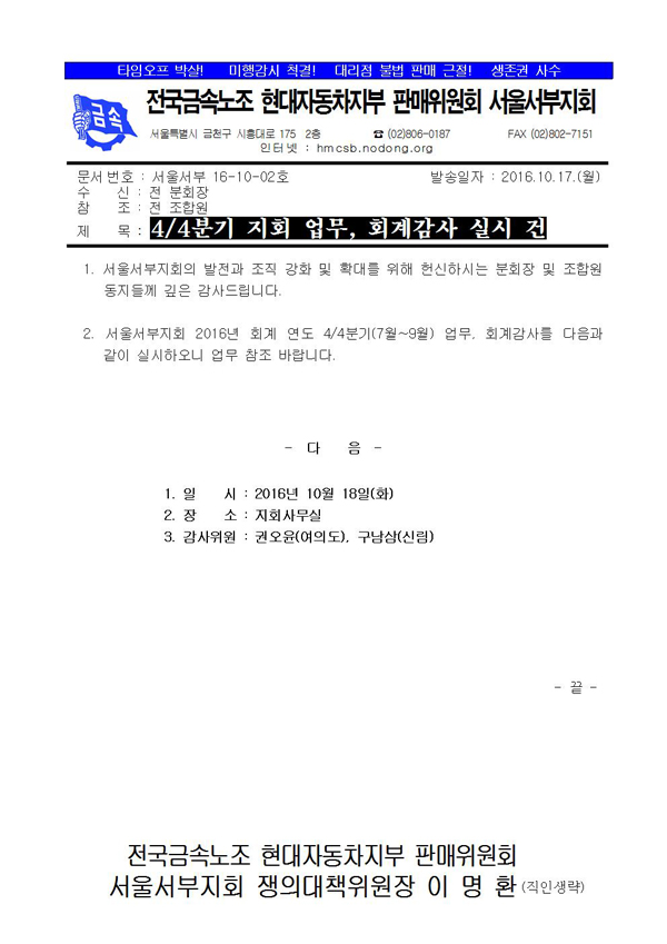 [°ø¹®]4/4ºÐ±â Áöȸ ¾÷¹«, ȸ°è°¨»ç ½Ç½Ã °Ç