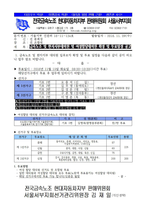 [¼±°üÀ§]±Ý¼Ó³ëÁ¶ ¹× ÇöÀÚÁöºÎ´ëÀÇ¿ø ¹× ¿©¼ºÇÒ´ç´ëÀÇ¿ø È®Á¤ ¹× ÅõÇ¥ÀÏÁ¤ °ø°í