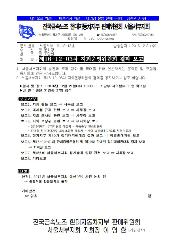 [°ø¹®]Á¦16-12-03Â÷ Áöȸ¿î¿µÀ§¿øÈ¸ °á°ú º¸°í