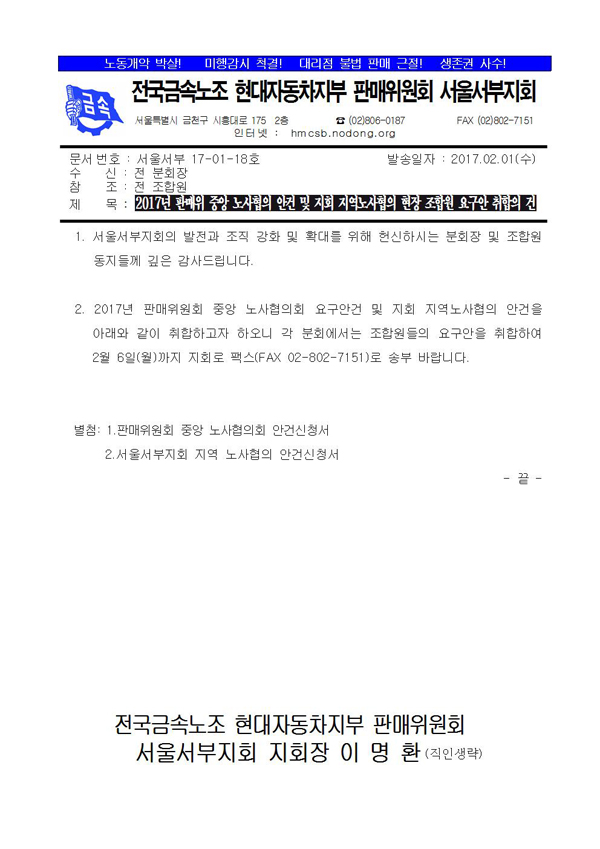 [°ø¹®]2017³â ÆÇ¸ÅÀ§ Áß¾Ó ³ë»çÇùÀÇ ¾È°Ç ¹× Áöȸ Áö¿ª³ë»çÇùÀÇ ÇöÀå Á¶ÇÕ¿ø ¿ä±¸¾È ÃëÇÕÀÇ °Ç