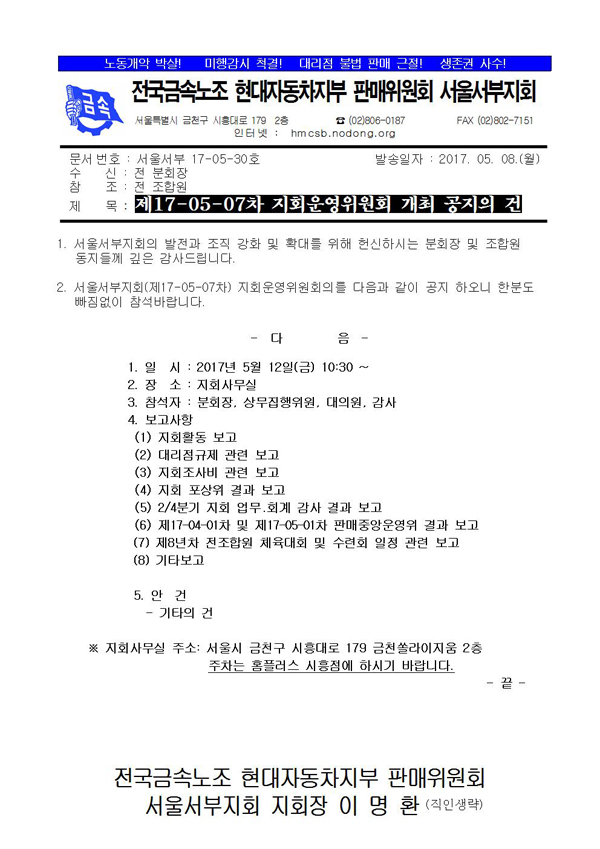 [°ø¹®]Á¦17-05-07Â÷ Áöȸ¿î¿µÀ§¿øÈ¸ °³ÃÖ °øÁöÀÇ °Ç