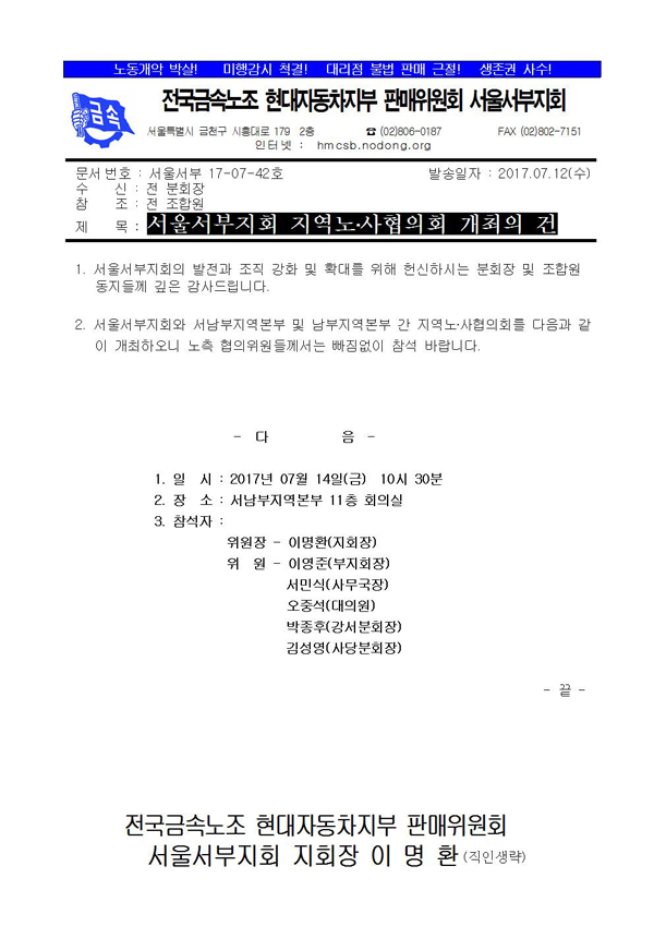 [°ø¹®]¼¿ï¼ºÎÁöȸ Áö¿ª³ë․»çÇùÀÇȸ °³ÃÖÀÇ °Ç