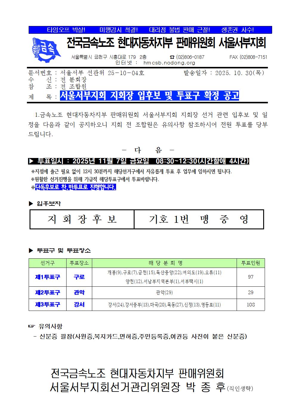 [¼±°üÀ§]¼¿ï¼ºÎÁöȸ ÁöȸÀå ÀÔÈĺ¸ ¹× ¼±°Å±¸ È®Á¤°ø°í
