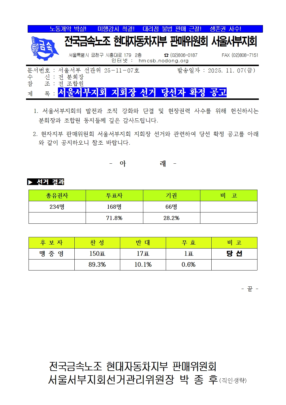 [¼±°üÀ§]¼¿ï¼ºÎÁöȸ ÁöȸÀå ¼±°Å ´ç¼±ÀÚ È®Á¤ °ø°í