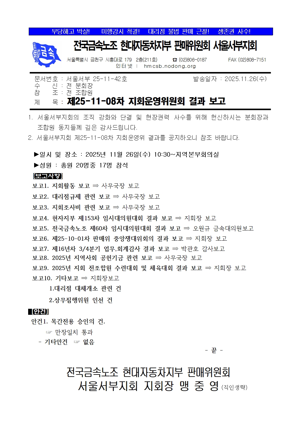 [°ø¹®]Á¦25-11-08Â÷ Áöȸ¿î¿µÀ§¿øÈ¸ °á°ú º¸°í